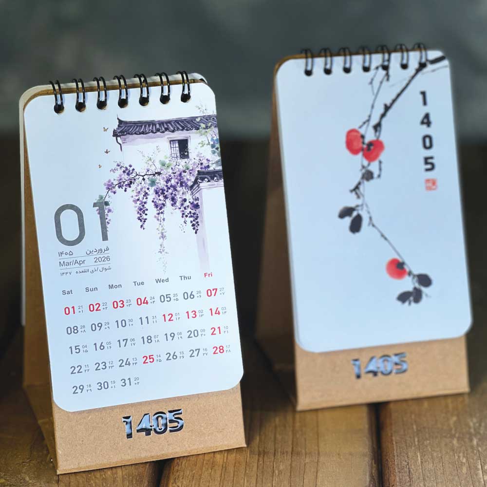 تقویم رومیزی 1405 یوگاری با طراحی شیک و کیفیت ساخت حرفهای، جلوهای مرتب و لوکس به میز کار شما میبخشد و هر ماه را با ظرافتی چشمنواز نمایش میدهد.