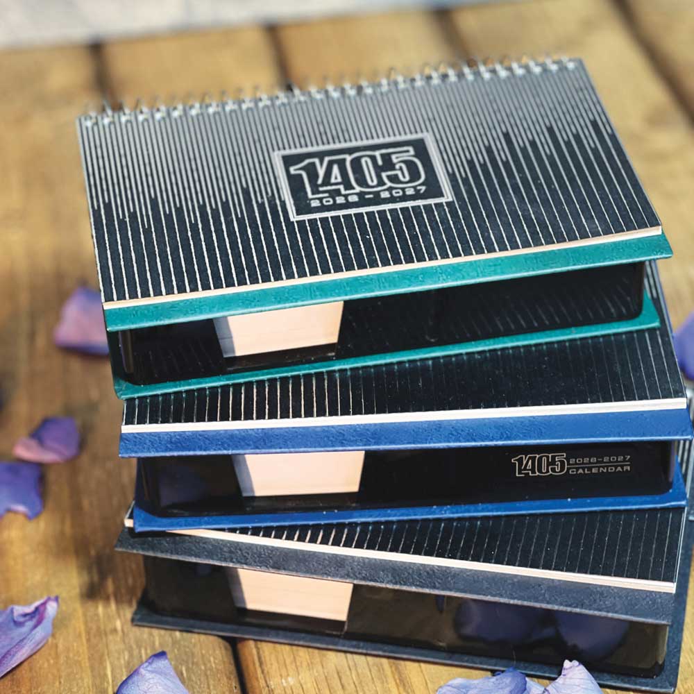 تقویم رومیزی 1405 مایا با طراحی شیک و کیفیت ساخت حرفهای، جلوهای مرتب و لوکس به میز کار شما میبخشد و هر ماه را با ظرافتی چشمنواز نمایش میدهد.