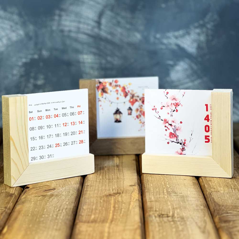 این تقویم با پایه چوبی و طراحی شیک ،مناسب هدیه تبلیغاتی و حتی استفاده شخصی روی میز کار، انتخابی شیک و کاربردی به شمار میرود.