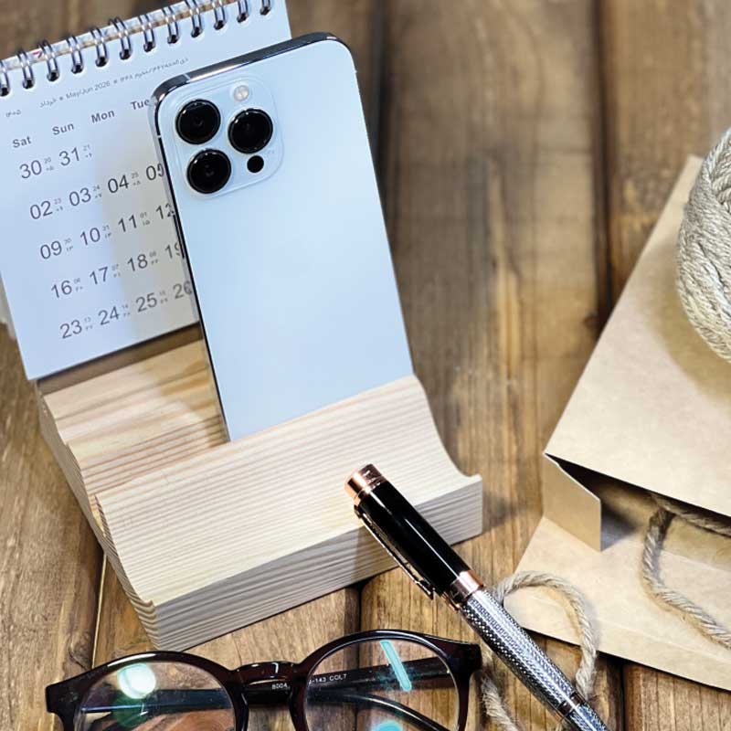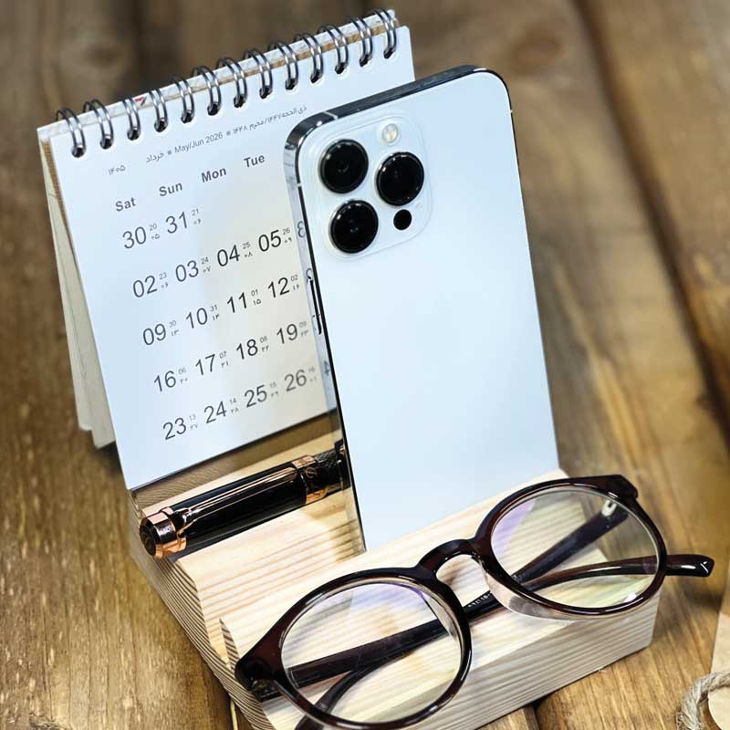 تقویم رومیزی کارا کد 501 با پایه چوبی و چاپ رنگی باکیفیت، برگه های کارتی 200 گرم ، جای هولدر موبایل ، جای خودکار ،جای عینک و اکسسوری و جعبه ،گزینهای شیک و کاربردی برای میز کار است. پایه چوبی ، با جای اکسسوری ، این محصول را به انتخابی بادوام و جذاب تبدیل کرده است.