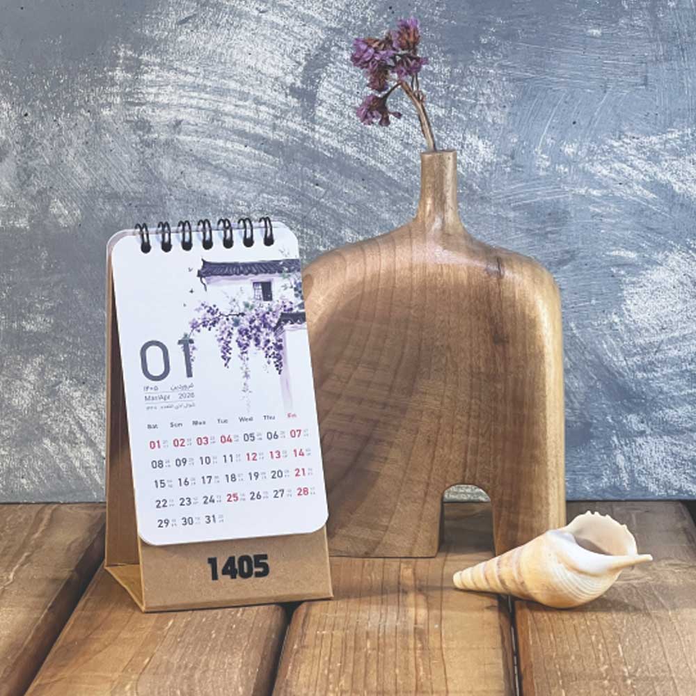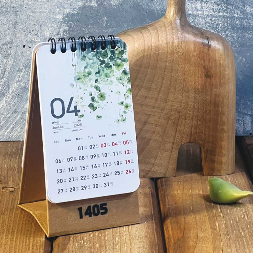تقویم رومیزی 1405 یوگاری با طراحی شیک و کیفیت ساخت حرفهای، جلوهای مرتب و لوکس به میز کار شما میبخشد و هر ماه را با ظرافتی چشمنواز نمایش میدهد.