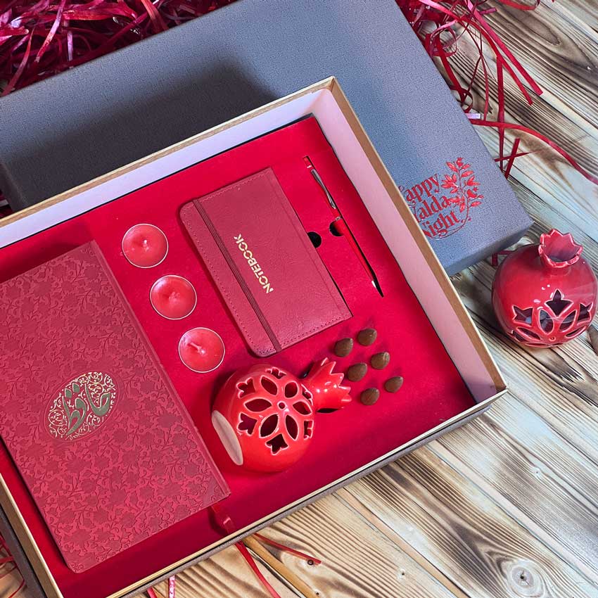 ست هدیه یلدایی کد 600 یک پک کامل و کاربردی شامل کتاب حافظ اروپایی ، نت جیبی روژان ، خودکار ، جاعودی و عود ، شمع وارمر است. این محصول با جعبه شیک و قابلیت شخصیسازی، انتخابی مناسب برای هدیههای شرکتی و مدیریتی است.