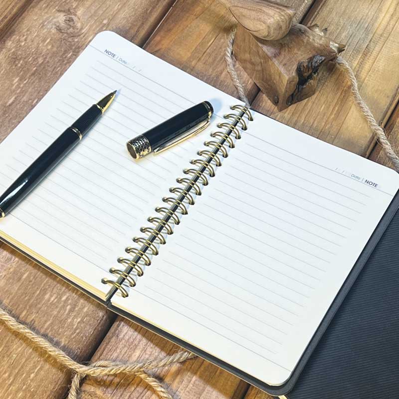 صفحات داخلی از کاغذ تحریر سفید ۷۰ گرم با چاپ تکرنگ تهیه شدهاند تا نوشتن با هر نوع خودکاری روان و بدون نشت جوهر باشد. ترکیب جلد مقاوم و فنر فلزی با دوام، این دفتر را به یکی از پرکاربردترین و شیکترین هدایای تبلیغاتی تبدیل کرده است.